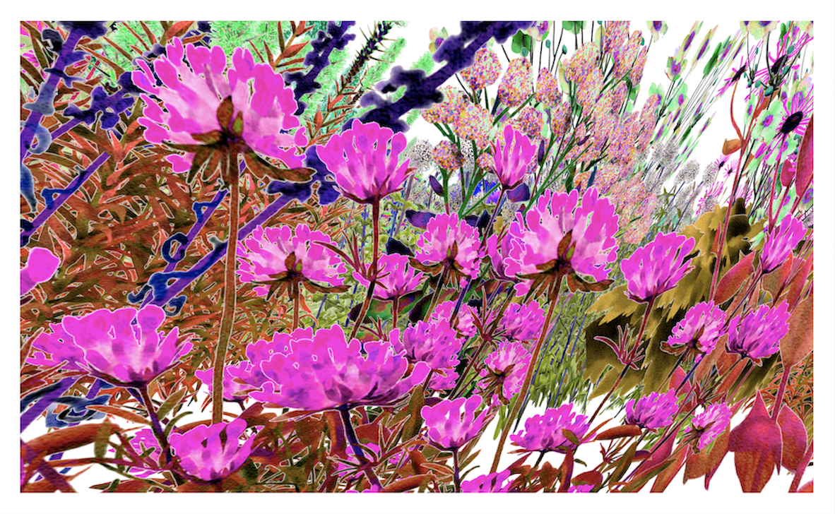 Applying Pollinator Pathmaker’s unique ‘Pollinator Vision’ filter, Ginsberg transforms the colours of each flower to infer the different colour perception spectra of different pollinating insect species.