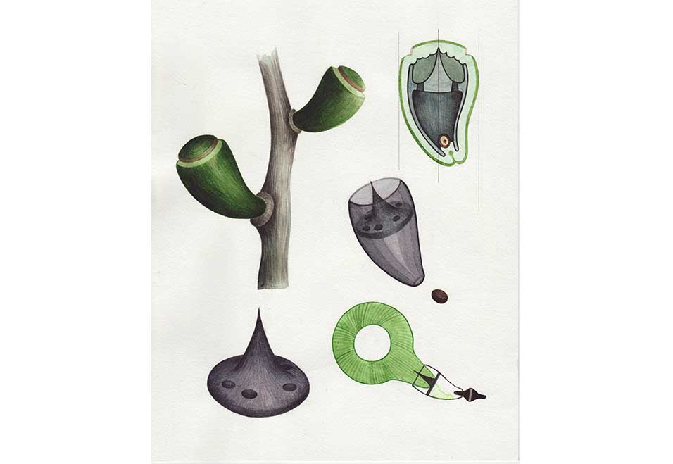 Synthetic biology enabled us to harness our natural environment for the production of things. Coded into the DNA of a plant, product parts grow within the supporting system of the plant's structure. When fully developed, they are stripped like a walnut from its shell or corn from its husk, ready for assembly.