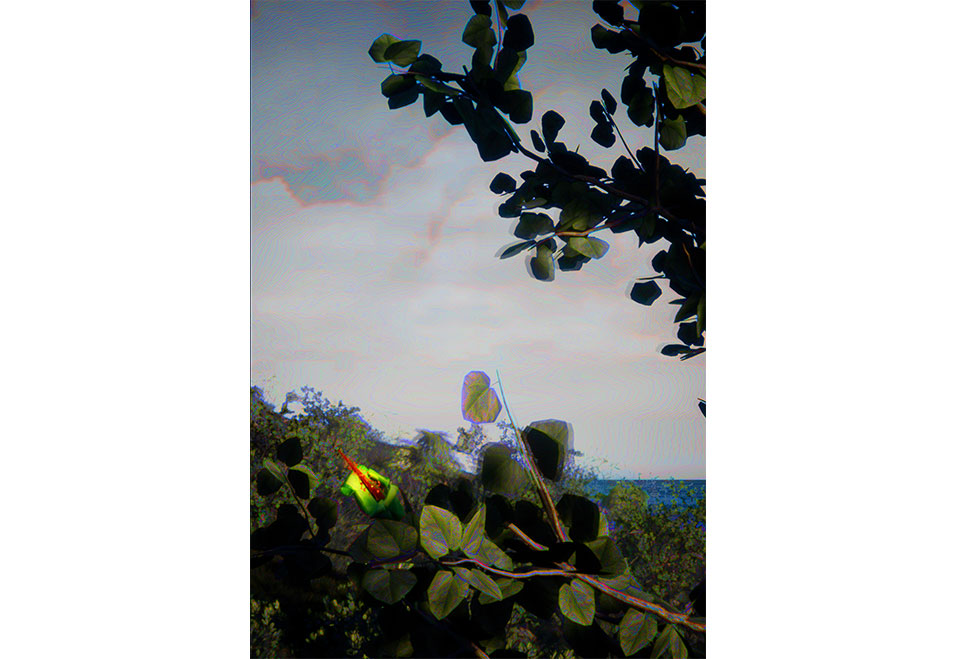 Digital reconstruction of the extinct Hibiscadelphus wilderianus Rock on the southern slopes of Mount Haleakalā, Maui, Hawaii, around the time of its last sighting in 1912. Credit: Christina Agapakis, Alexandra Daisy Ginsberg, Sissel Tolaas, with support from IFF Inc. and Ginkgo Bioworks, Inc. © Alexandra Daisy Ginsberg.