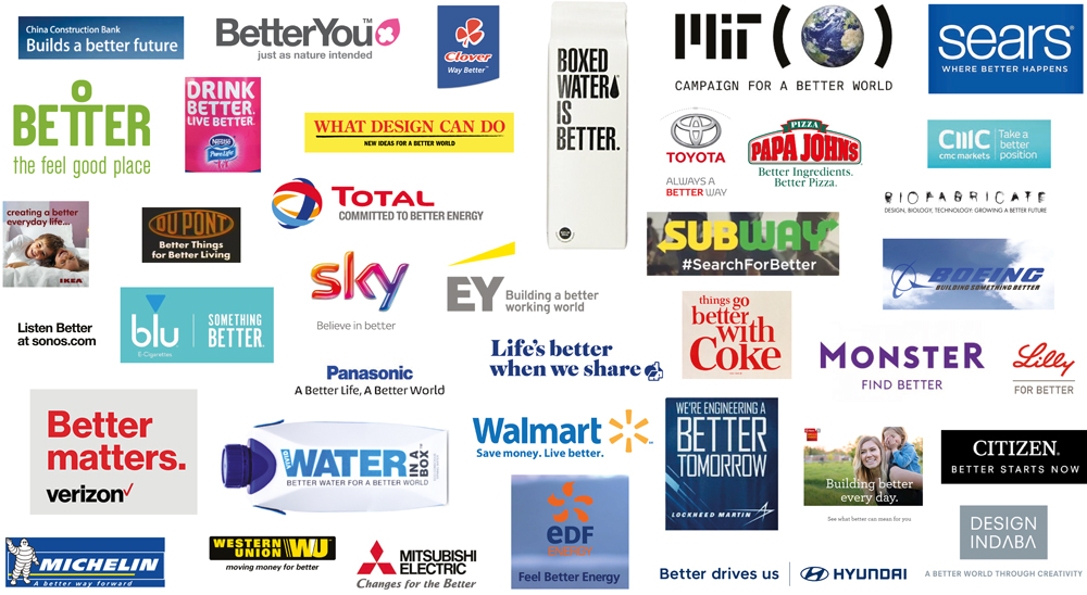 Once I noticed the problem of better, I began to see it everywhere. Marketers use promises of better to sell everything from beer to chemicals, corporate social responsibility, financial tools, pizzas, and rival political ideologies. Advertisements, propaganda, policies, visions, and utopias are crafted by copywriters, politicians, designers—and even scientists—all promising us a better future. But better is not a universal good or a verified measure; it is imbued with politics and values. And better will not be delivered equally, if at all.
