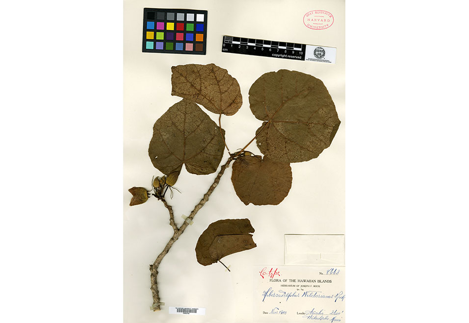 Hibiscadelphus wilderianus, coll. J. F. Rock s.n. from e [east] Maui, Hawaii. The Herbarium of the Arnold Arboretum of Harvard University
