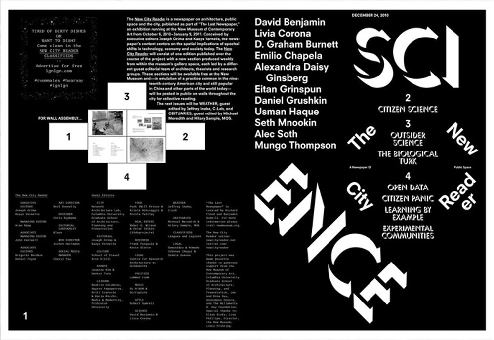 This article appeared in The New City Reader at the The Last Newspaper exhibition, curated by Richard Flood and Benjamin Godsill, New Museum, New York, October 6 2010–January 9 2011.