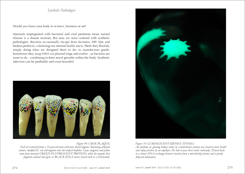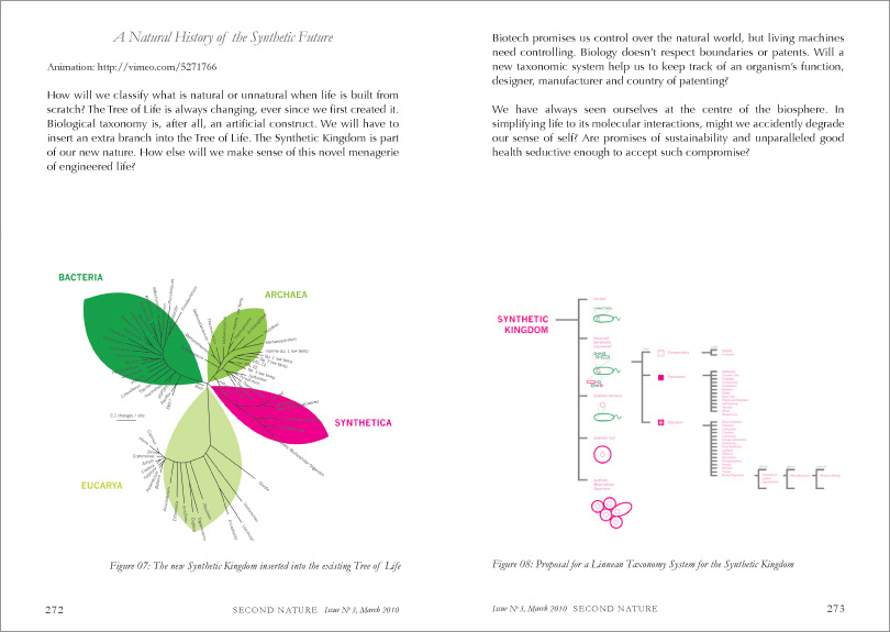 Our increasingly complex scientific world functions in the realm of the microscopic, obscuring the macroscopic big picture. Secreted away in the laboratory, biotechnology is unapproachable, yet it promises to change our lives. Perhaps we need a discipline connecting with the human- scale context: the expected and unexpected implications of emerging technologies on everyday life. Describing two design projects I produced at the Royal College of Art that focus on the emerging field of synthetic biology (The Synthetic Kingdom and Growth Assembly), I propose that design can engage with science and technology in new ways, bringing the designer’s skills of functionality, synthesis, collaboration and tangibility to allow us—biotech’s ultimate consumers—better access to question and consider our alternative futures.